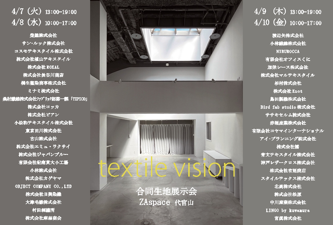 textile vision 合同生地展示会 の後半2日間にササキセルムが出展致します。